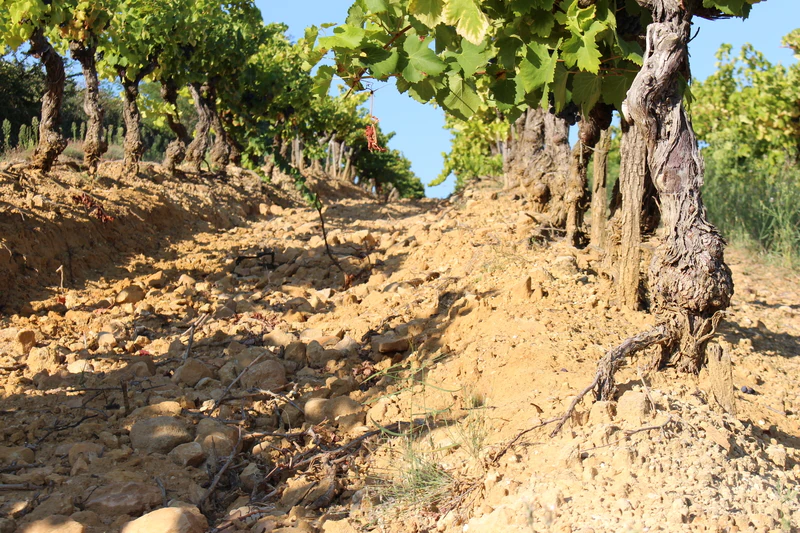 El Mistral juega un papel clave. Este viento frío y seco sopla desde el valle del Ródano y reduce la humedad en el viñedo. Como resultado, las uvas se mantienen sanas y la presión de enfermedades es baja.